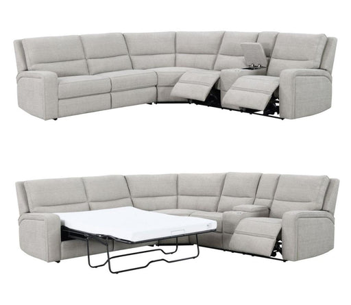 Emerald Home FurnishingsMedford Collection by Emerald Home Furnishings Tan finish Clean lines Modern style Dual power-recline seats Full-size memory foam sleeper Neut...