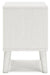 Dare to take minimalism to the max. This nightstand has an air of sleek simplicity thanks to its white painted finish with subtle replicated wood grain. Magnificently mod splay legs are a compelling complement to the streamlined design. And with two different faux leather drawer pulls that allow you to customize the nightstand to suit your space, there's no doubt about it: This contemporary piece is sure to become a classic.