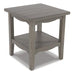 Put your love of European farmhouse styling on display. Finished with an antiqued gray chipped paint effect for an authentic vintage look, this end table is loaded with character. An open display shelf allows for storage and easy access to books, beverages and more.