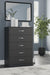 Practical and attractive, this chest of drawers blends seamlessly with modern decor and makes a smart addition to a bedroom. Five spacious drawers will keep your clothes neat and organized. Sleek metal pulls in a brushed nickel-tone finish add to the streamlined aesthetic. Combine with other pieces in the collection to create a room that’s smart and stylish.