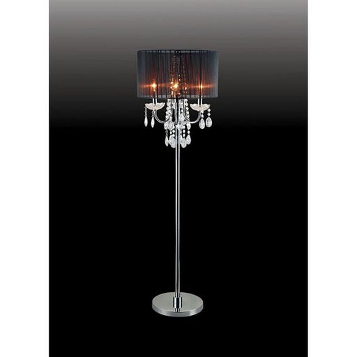 FOA WestJada Black Floor Lamp, 16"DIA X 62 1/2"H, 16lbs. A stylish black shade covers a cascading set of imported crystal droplets surrounding a metal base...