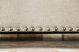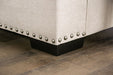 Sit back and enjoy the tried-and-true classic appearance of this loveseat in your living. Plush T-seat cushions and loose pillow backs feature smooth curves that create a truly inviting appeal that enhances this loveseat, without detracting from the comfort it provides: the soft fabric and spacious wide armrests. Each piece is supported by tapered block legs visually obscured by the bright nickel polished nailheads that line the bottom edge of the frame. This loveseat mingles uniquely old fashioned themes with more modern luxurious comforts.