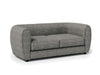 This compact living room ensemble is full of welcomed surprises. The tall arms and low back is an obvious homage to the tuxedo style, but the bulbous shape and smoother lines is a unique twist taking inspiration from the modern era. Underneath the seat cushions are high density foam, making firmer seats than one would expect for the shape that it is in. Finally, soft boucle fabric wraps around the whole piece highlighting a certain air of elegance and quiet class.